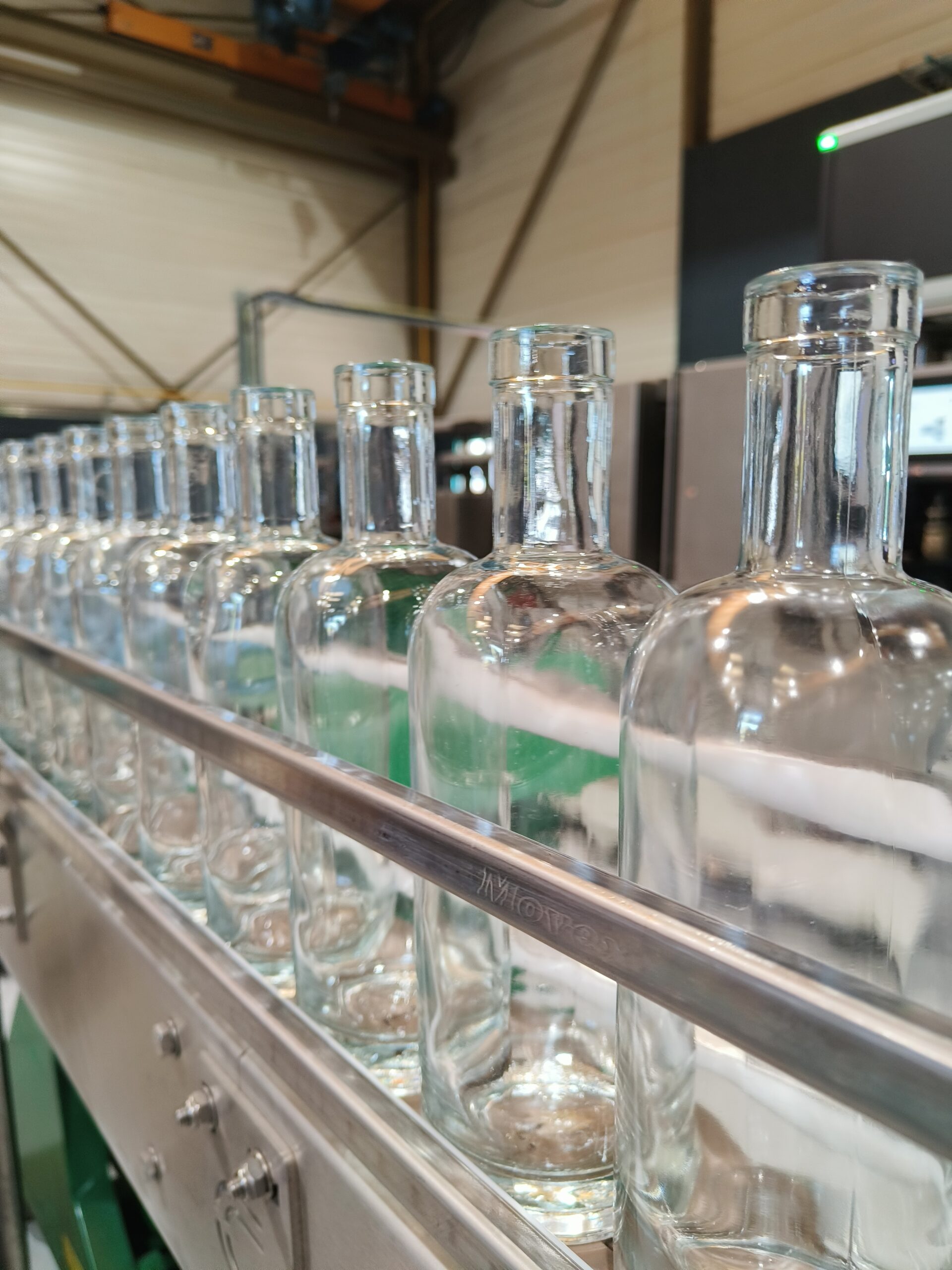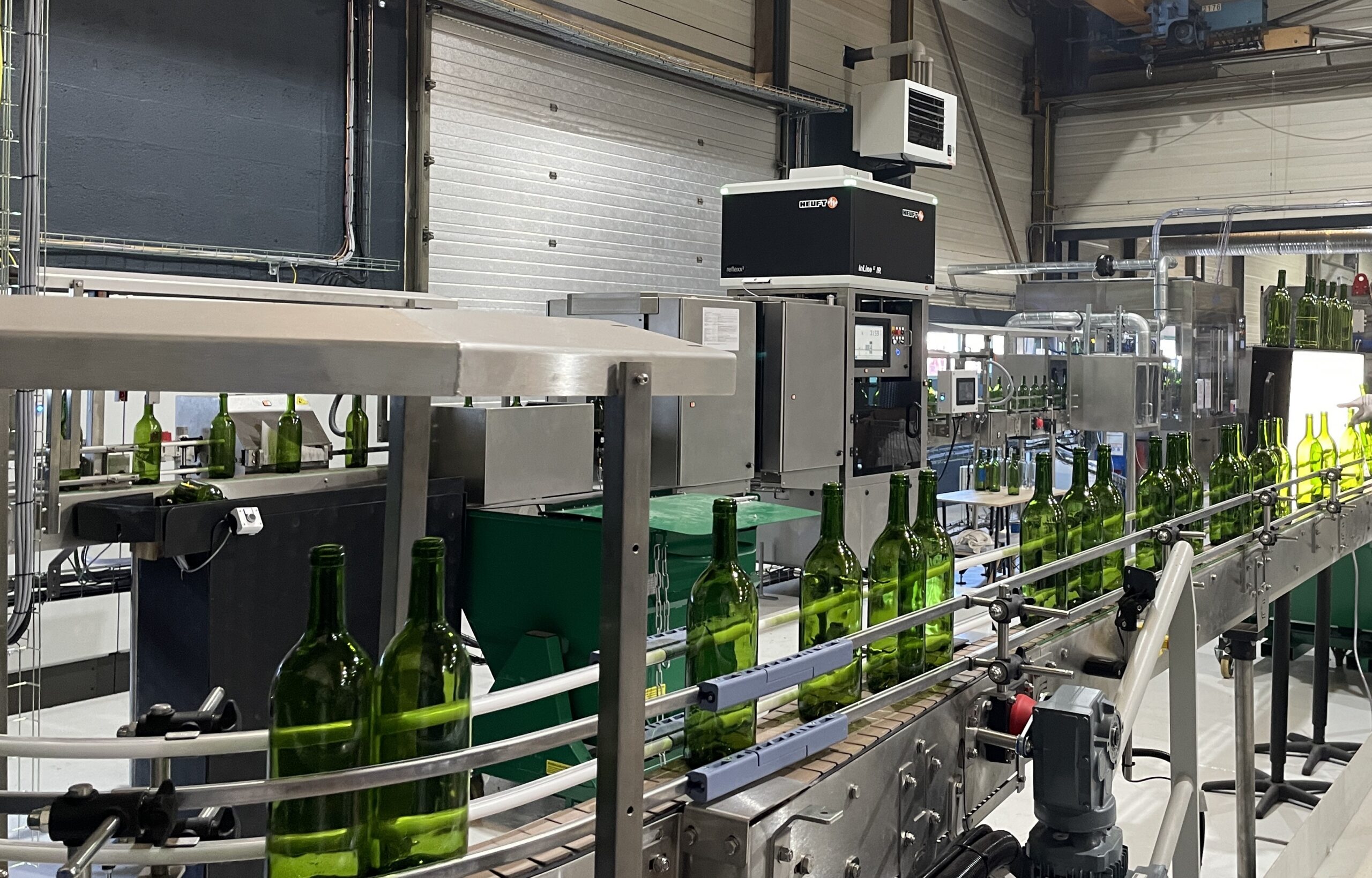 - Inspection automatique : Une machine de pointe (Heuft) inspecte chaque bouteille à l’aide de caméras haute précision pour identifier et écarter tout éventuels défauts ou résidu d’humidité.